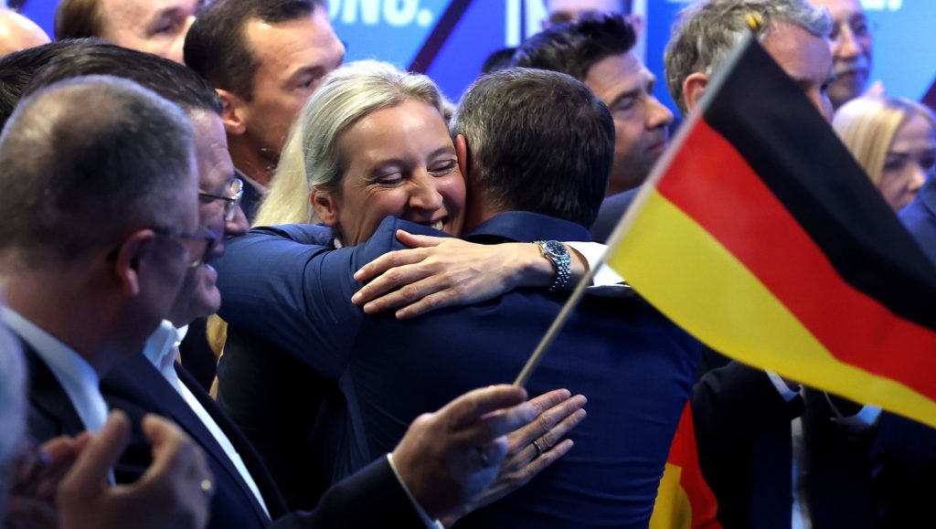 Kršćansko-demokratska unija (CDU) i njena sestrinska stranka u Bavarskoj, Kršćansko-socijalna unija (CSU), zadržale su prvo mjesto s 27 posto potpore dok je njihov koalicijski partner Socijaldemokratska partija (SPD) na 15 posto.