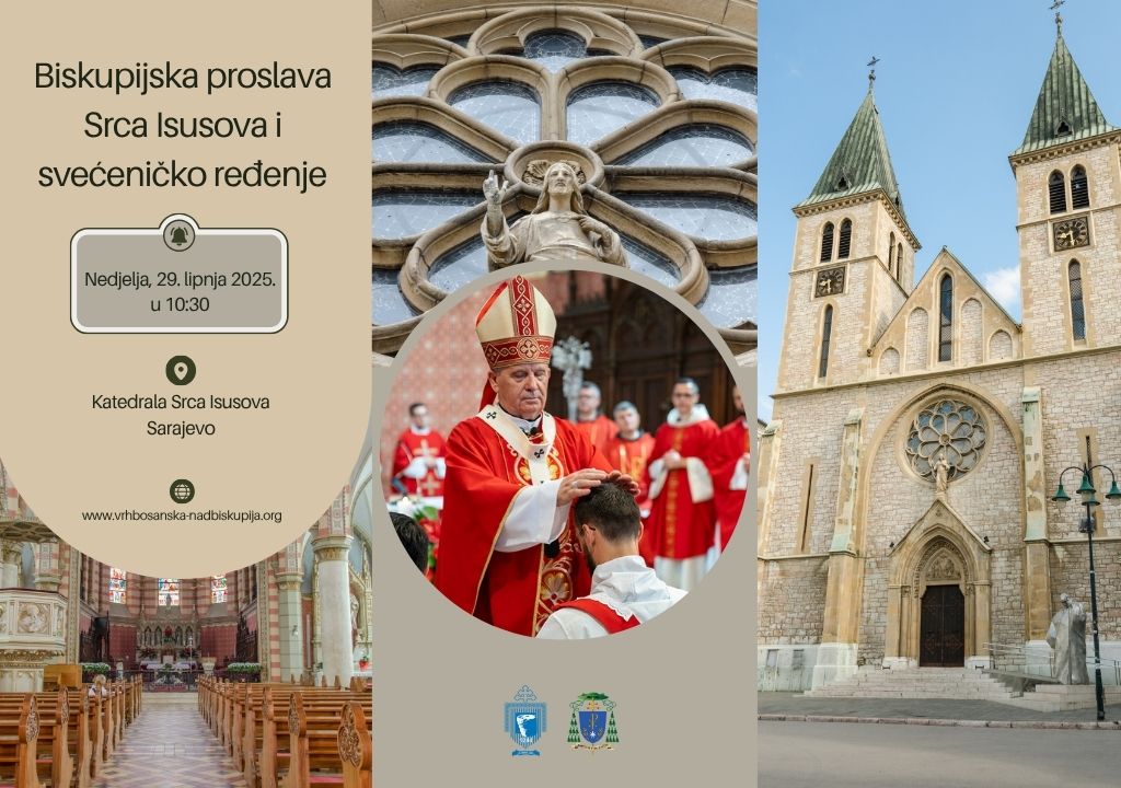 Na svetkovinu Sv. Petra i Pavla u nedjelju, 29. lipnja u 10:30 u katedrali Srca Isusova u Sarajevu pod svečanom sv. misom bit će upriličena Biskupijska proslava Srca Isusova tijekom koje će vrhbosanski nadbiskup mons. Tomo Vukšić za svećenike zarediti petoricu đakona.