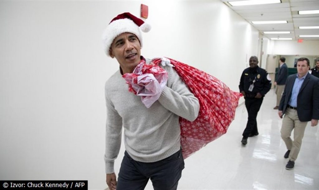 Bivši američki predsjednik Barack Obama odjeven u Djeda Mraza u srijedu je nenajavljeno posjetio bolesnu djecu u jednoj bolnici u Washingtonu.