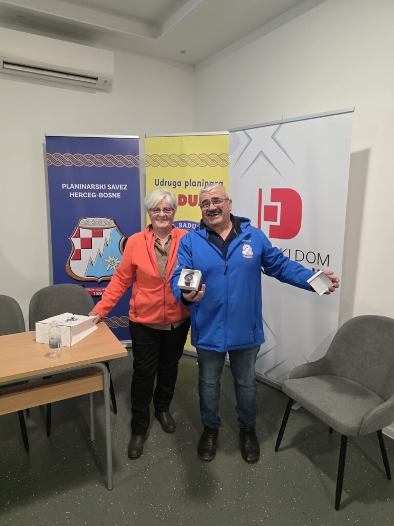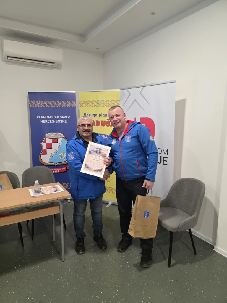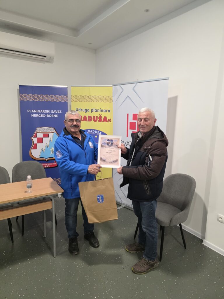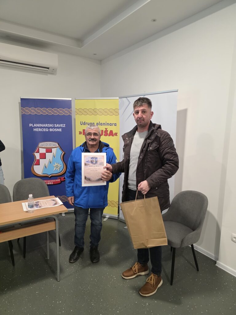 Nakon izbora novog vodstva, uslijedila je dodjela priznanja najaktivnijim članovima Udruge u protekloj godini, čime je istaknuta važnost volonterskog rada, predanosti i aktivnog sudjelovanja u životu Udruge. Poseban trenutak večeri bio je svečani čin dodjele prigodnog dara bivšem predsjedniku Mati Periću – Mapeku, kao znak zahvalnosti za njegov dugogodišnji angažman, vodstvo i izniman doprinos razvoju i radu Udruge planinara Raduša Uskoplje.