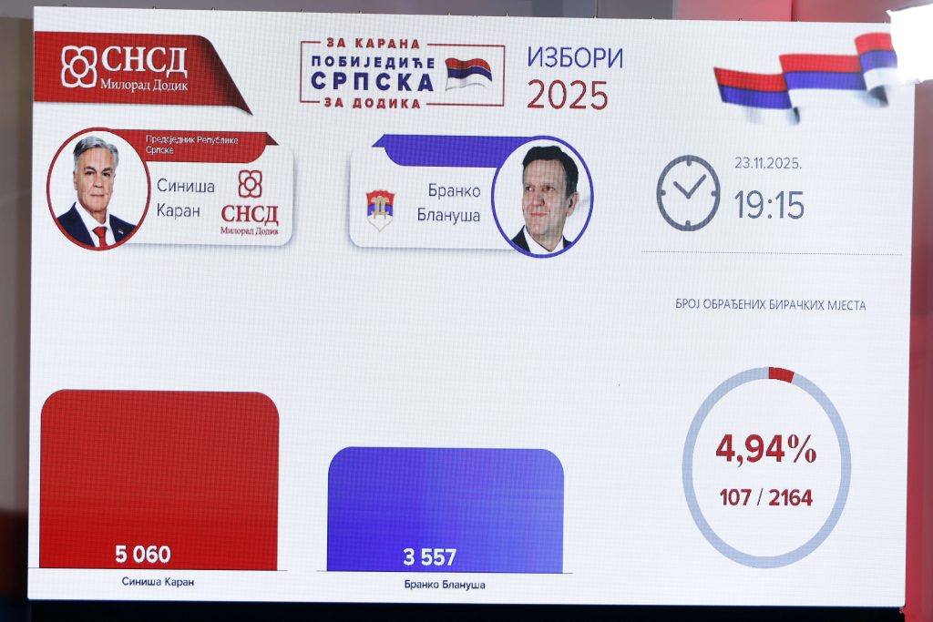 Središnje izborno povjerenstvo BiH priopćilo je preliminarne rezultate prijevremenih izbora za predsjednika Republike Srpske. Na osnovu tih rezultata novi predsjednik RS-a je Siniša Karan iz SNSD-a.
