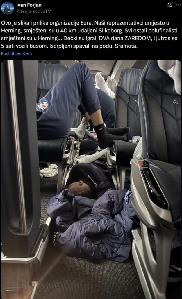Problemi tu ne staju. Hrvatska je u kratkom razdoblju odigrala dvije izuzetno zahtjevne utakmice, a nakon iscrpljujuće pobjede nad Mađarskom reprezentativci su morali na višesatno putovanje autobusom. Put je trajao gotovo pet sati, a iscrpljenost je bila tolika da su neki igrači spavali na podu autobusa.